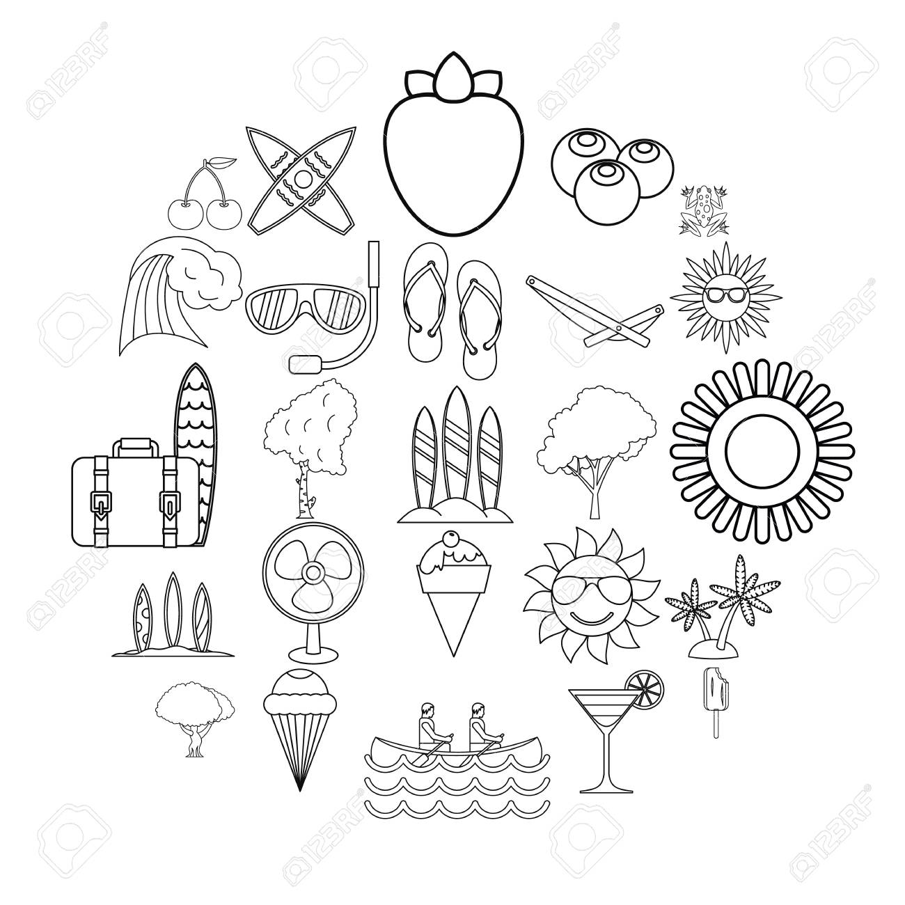 Outline Icons Of On Summer Season Topic Royalty Free Cliparts Vectors And Stock Illustration Image 86639040
