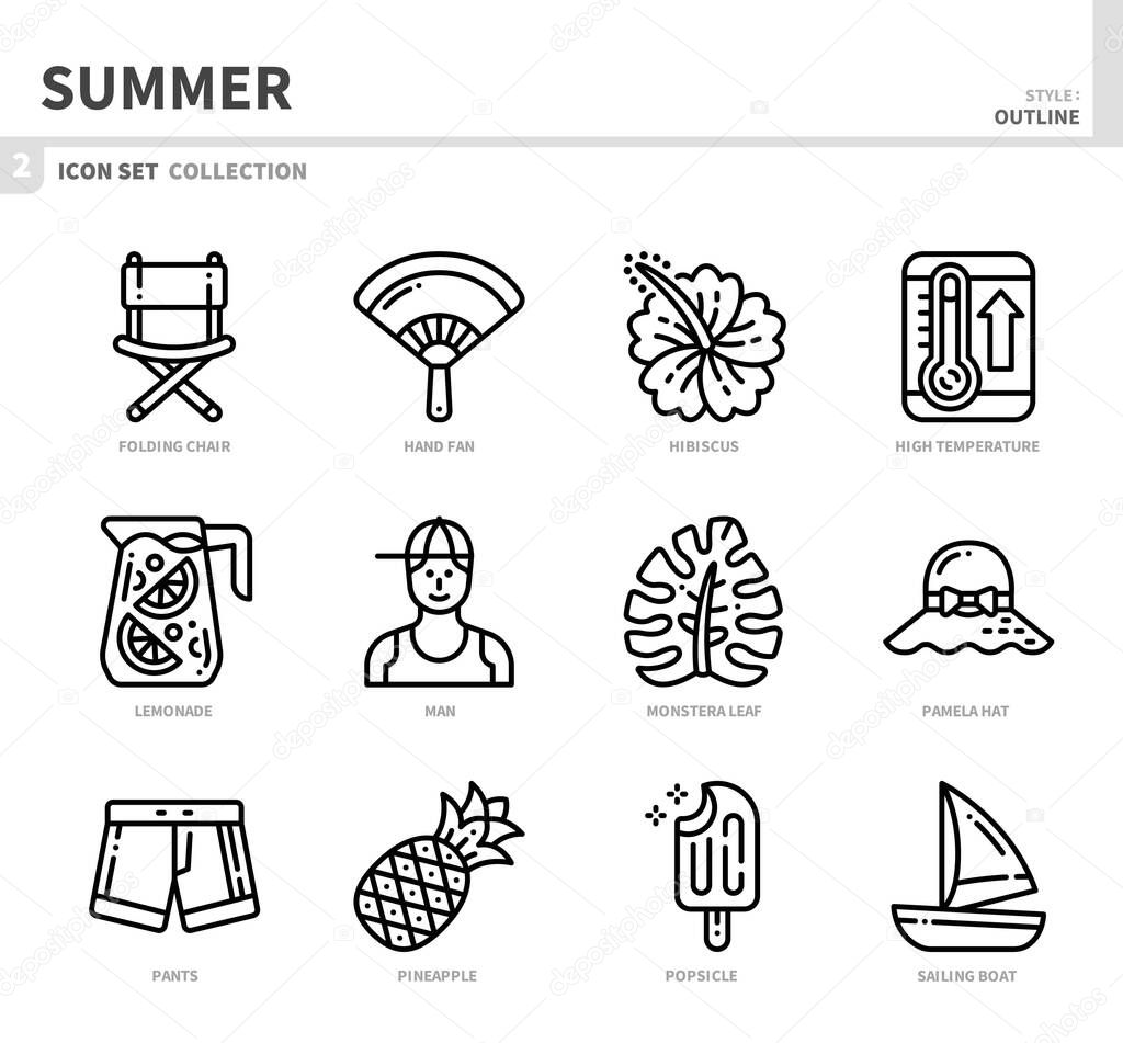 Summer Season Icons Set Outline Style Royalty Free Vector